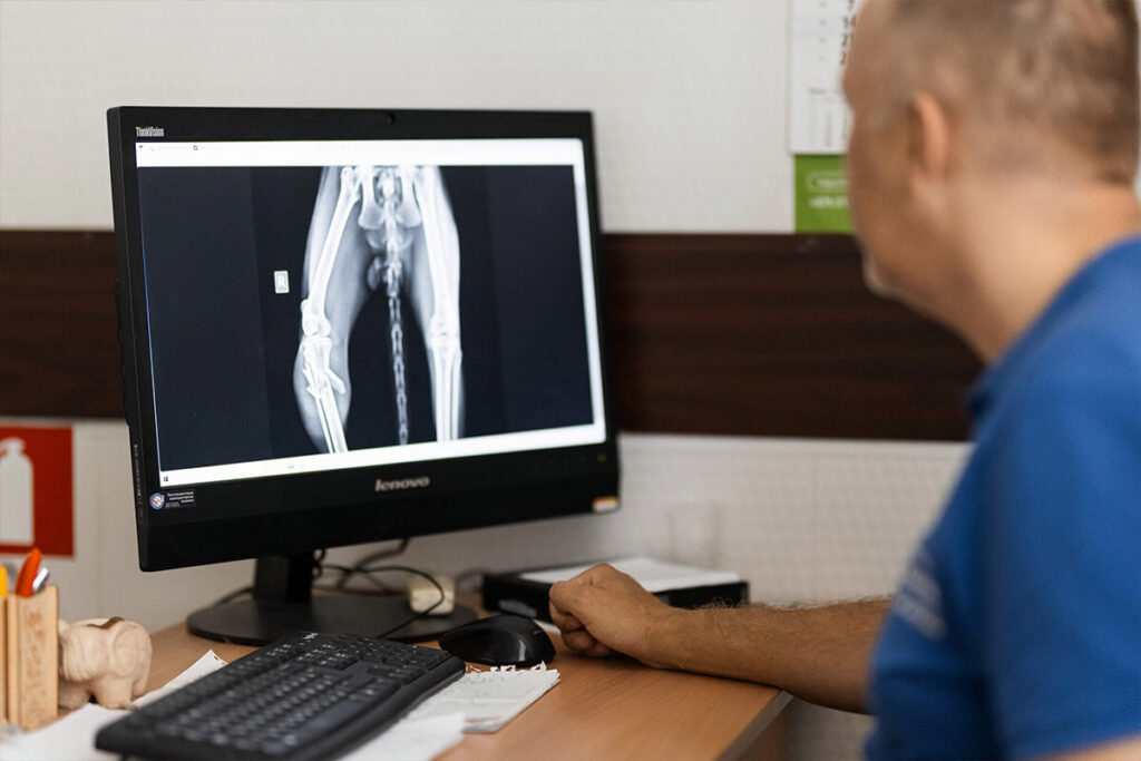 Решение о необходимости остеосинтеза принимается ветеринарным врачом-хирургом на основании рентгенологического обследования, общего состояния животного и характера повреждения.